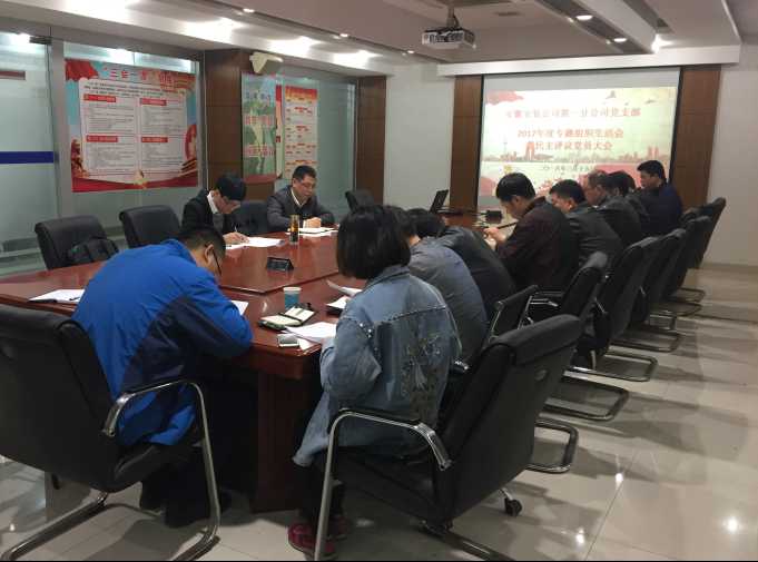 3月15日上午,第一分公司黨支部召開了2017年度專題組織會暨民主評議黨員大會,分公司領(lǐng)導(dǎo)班子和支部全體黨員參加了會議,聯(lián)系點領(lǐng)導(dǎo)總會計師張元斌、黨委辦公室楊駿輝受邀出席會議。