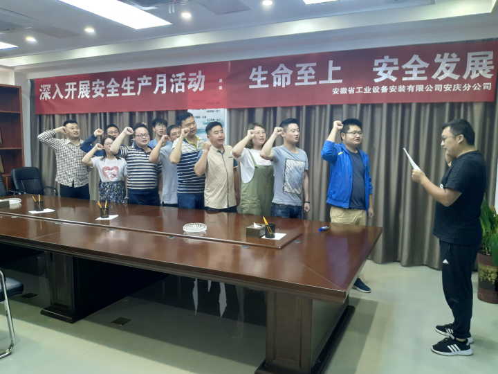 為認真貫徹落實全國第十七個“安全生產月”活動和集團、公司關于開展安全生產月活動的通知,以習近平新時代中國特色社會主義思想為指導,以“生命至上、安全發(fā)展”為主題,6月1日上午安慶分公司在分公司機關、SKBR項目施工現場及安慶庫站項目施工現場分別舉行了“安全生產月”宣誓簽名活動,分公司全體員工及各項目部施工班組參加了宣誓。