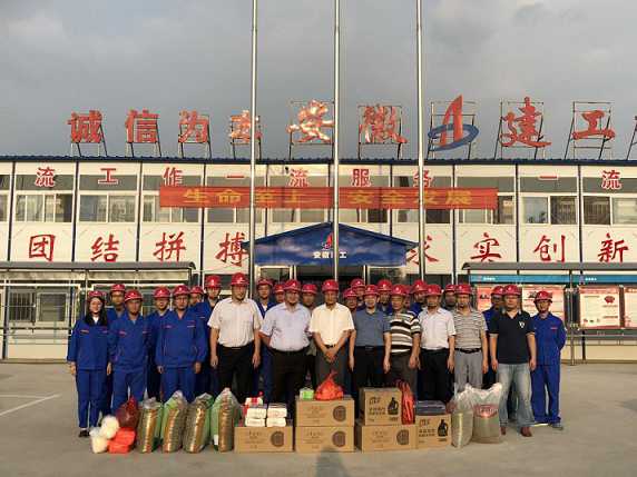 牛曙東一行一到工地就深入施工現(xiàn)場察看項目安全防護(hù)設(shè)施、文明施工、工程進(jìn)展情況,還仔細(xì)詢問員工的工作、生活和項目黨建工作等。為奮戰(zhàn)在高溫中的一線職工送去了礦泉水、綠豆、毛巾等防暑藥品等慰問品,關(guān)切職工工作和身體狀況,深入到職工宿舍、食堂實(shí)地查看職工居住和生活條件。詳細(xì)了解高溫期間工作安排情況,并向堅守在高溫一線的職工表示親切慰問和感謝。牛曙東指出,連續(xù)高溫天氣,一線職工始終堅守在崗位,落實(shí)高溫天氣作業(yè)安全防范措施,做好當(dāng)前防暑降溫工作,防止職工中暑,確保人身安全。