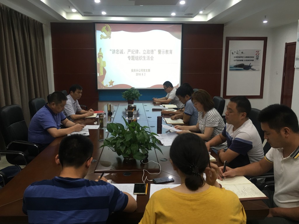 8月2日下午,安慶分公司黨支部組織召開(kāi)了“講忠誠(chéng)、嚴(yán)紀(jì)律、立政德”警示教育專題組織生活會(huì),公司董事長(zhǎng)、總經(jīng)理、黨委副書(shū)記王軍邦,紀(jì)委書(shū)記、工會(huì)主席李寬旭到會(huì)指導(dǎo)。分公司領(lǐng)導(dǎo)班子成員、支部黨員參加了會(huì)議,會(huì)議由分公司黨支部書(shū)記劉紅艷主持。