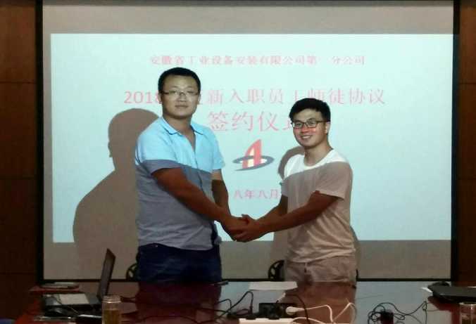 為了使新入職的大學(xué)畢業(yè)生能夠盡快地適應(yīng)企業(yè)、熟悉工作,盡快掌握崗位技能,幫助大學(xué)生早日成才,日前第一分公司特地挑選項(xiàng)目經(jīng)理與大學(xué)畢業(yè)生確定師徒關(guān)系,8月17日下午舉行了新員工師徒協(xié)議簽約儀式。