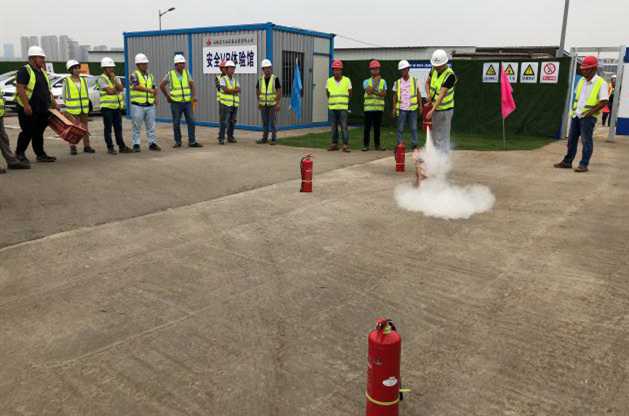 演練正式開始前,項目部全體人員在“安全消防演練”的紅色橫幅上鄭重的簽下了自己的名字。演練按預(yù)定方案進(jìn)行,項目部安全員闡述了本次演練的目的和意義,介紹基礎(chǔ)的火災(zāi)消防知識,點明掌握火災(zāi)逃生的基本方法。項目管理公司安全工程師針對項目部可能存在的火災(zāi)隱患做了重點闡述,并指出項目部可能發(fā)生火災(zāi)的地點主要為生活區(qū),重點強調(diào)各班組長在生活區(qū)要做好宣傳帶頭作用,將火災(zāi)隱患扼殺在萌芽之中。項目技術(shù)負(fù)責(zé)人李冬現(xiàn)場講解并示范了常見的手提式干粉滅火器的使用方法,而后參演人員親自體驗了如何正確的使用滅火器。消防演練緊張有序,安全保證工作到位,演練達(dá)到預(yù)期效果。