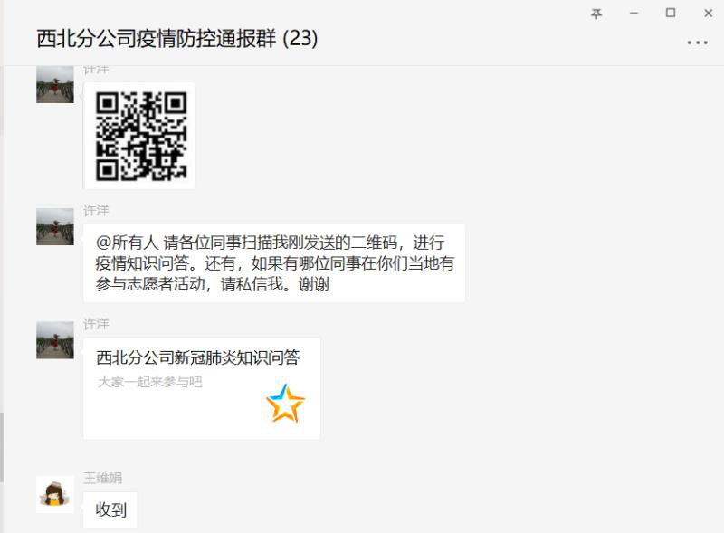 為提高廣大員工對新冠肺炎的了解,提高防控意識,掌握防控要點,共同打贏疫情防控阻擊戰(zhàn),2月14日,西北分公司工會組織開展了新冠肺炎疫情防控知識網(wǎng)絡(luò)答題活動。