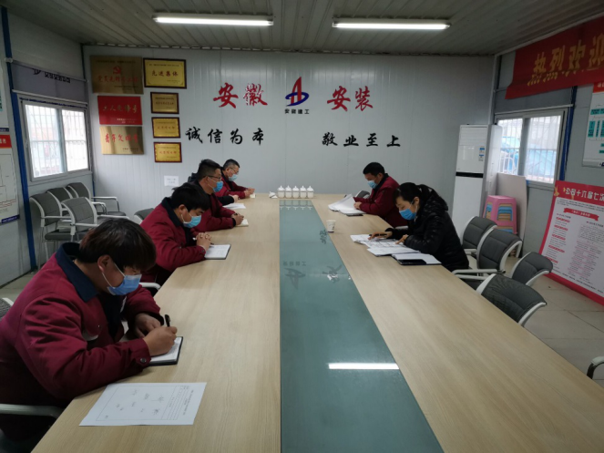 支部分別通過黨員視頻會、項目例會、團(tuán)支部會議等多種形式學(xué)習(xí)宣貫安徽建工控股一屆七次職代會精神、安徽安裝第十六屆七次職代會精神、《安徽建工集團(tuán)控股有限公司疫情防控期間復(fù)工管理方案》及《安徽安裝公司關(guān)于切實做好復(fù)工復(fù)產(chǎn)前疫情防控工作的通知》等疫情防控相關(guān)文件精神。與此同時,為營造濃厚的學(xué)習(xí)氛圍,還在項目現(xiàn)場制作張貼宣傳展板,并把學(xué)習(xí)資料上傳到分公司QQ工作群,把職代會精神和疫情防控文件宣傳至項目一線。