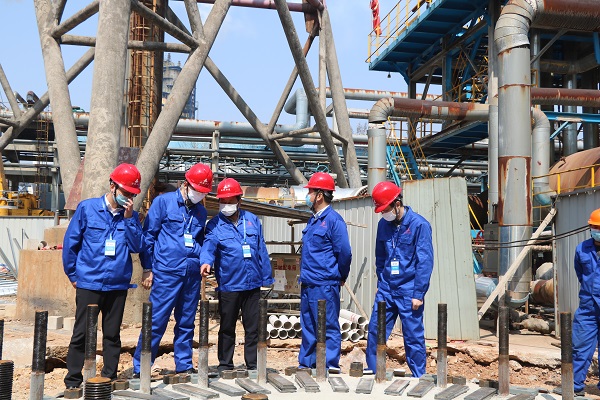 3月18日上午,公司副總經(jīng)理高飛一行赴安慶分公司承攬的“安慶石化Ⅰ、Ⅱ硫磺增設(shè)煙氣后堿洗流程項目”調(diào)研指導大型設(shè)備吊裝工作。