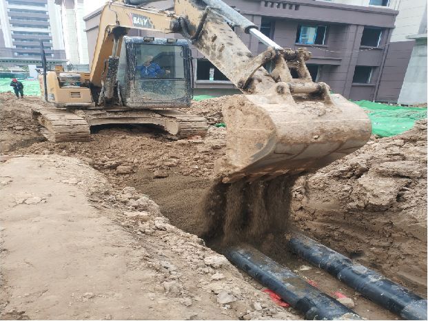 漢城源筑書(shū)香苑供暖工程項(xiàng)目部位于江蘇省徐州市沛縣漢城源筑項(xiàng)目書(shū)香苑小區(qū),施工范圍包括:書(shū)香苑熱力環(huán)網(wǎng)(一次環(huán)網(wǎng)、二次環(huán)網(wǎng))、熱交換站及自動(dòng)化控制系統(tǒng)(含PLC全套自控系統(tǒng))、管道連接、所有與市政及單體樓棟對(duì)接檢修井等圖紙范圍內(nèi)全部?jī)?nèi)容,以及與紅線(xiàn)外市政管網(wǎng)連接等;合同價(jià)1015.37萬(wàn)元。2020年8月25日正式進(jìn)場(chǎng)施工后,項(xiàng)目團(tuán)隊(duì)嚴(yán)格按照合同施工節(jié)點(diǎn)抓生產(chǎn)、保任務(wù),尤其是10月-11月初,全體參建人員不畏艱難、逆勢(shì)而上,堅(jiān)持白加黑、5+2的連續(xù)作戰(zhàn)模式,管理人員靠前指揮、作業(yè)人員并聯(lián)推進(jìn),只見(jiàn)挖掘機(jī)迅速掘進(jìn)、土方車(chē)來(lái)回穿梭、焊接火花四處飛濺……到處一片大干快干的繁忙景象。截至11月10日,第一階段1、2號(hào)樓室外熱力管網(wǎng)敷設(shè)任務(wù)已基本完成,比合同規(guī)定節(jié)點(diǎn)提前20天,獲得了業(yè)主單位的肯定與贊許。