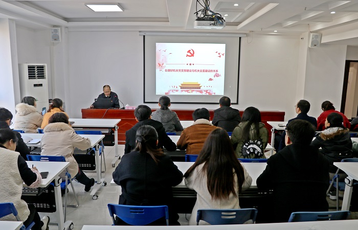 課上,江輝結(jié)合自身多年黨務(wù)知識,從“處理好機關(guān)黨支部建設(shè)與機關(guān)全面建設(shè)的關(guān)系”“處理好機關(guān)黨支部領(lǐng)導(dǎo)與機關(guān)行政領(lǐng)導(dǎo)的關(guān)系”“處理好機關(guān)黨務(wù)工作與業(yè)務(wù)工作的關(guān)系”三個方面深刻闡述了作為機關(guān)黨支部應(yīng)如何積極發(fā)揮作用。他指出,機關(guān)黨支部要充分認清支部在機關(guān)全面建設(shè)中的重要地位和作用,機關(guān)黨員干部要不斷增強凝聚力和戰(zhàn)斗力,同時要注意理清機關(guān)黨支部領(lǐng)導(dǎo)與機關(guān)行政領(lǐng)導(dǎo)的區(qū)別與不同,要善于抓大事,善于處理好機關(guān)黨務(wù)工作與機關(guān)業(yè)務(wù)工作的關(guān)系,找準黨務(wù)工作與業(yè)務(wù)工作的切入點,加強機關(guān)黨支部建設(shè),持續(xù)推動各項黨建工作任務(wù)落實落地,以黨建工作新成效促進安徽安裝公司高質(zhì)量發(fā)展。