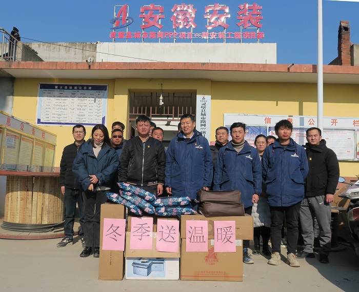 項(xiàng)目經(jīng)理趙磊表示在現(xiàn)在項(xiàng)目搶工的非常時(shí)期分公司從資金、人員等各個(gè)方面鼎力支援,又在寒冷的冬日及時(shí)送來(lái)御寒物品,這不僅溫暖了大家的身體,更溫暖了大家的心里。項(xiàng)目部將一如既往,鼓足干勁,發(fā)揮安裝人的精神,干好項(xiàng)目、開(kāi)拓市場(chǎng),力爭(zhēng)將安徽安裝的旗幟飄揚(yáng)在靈璧各處!