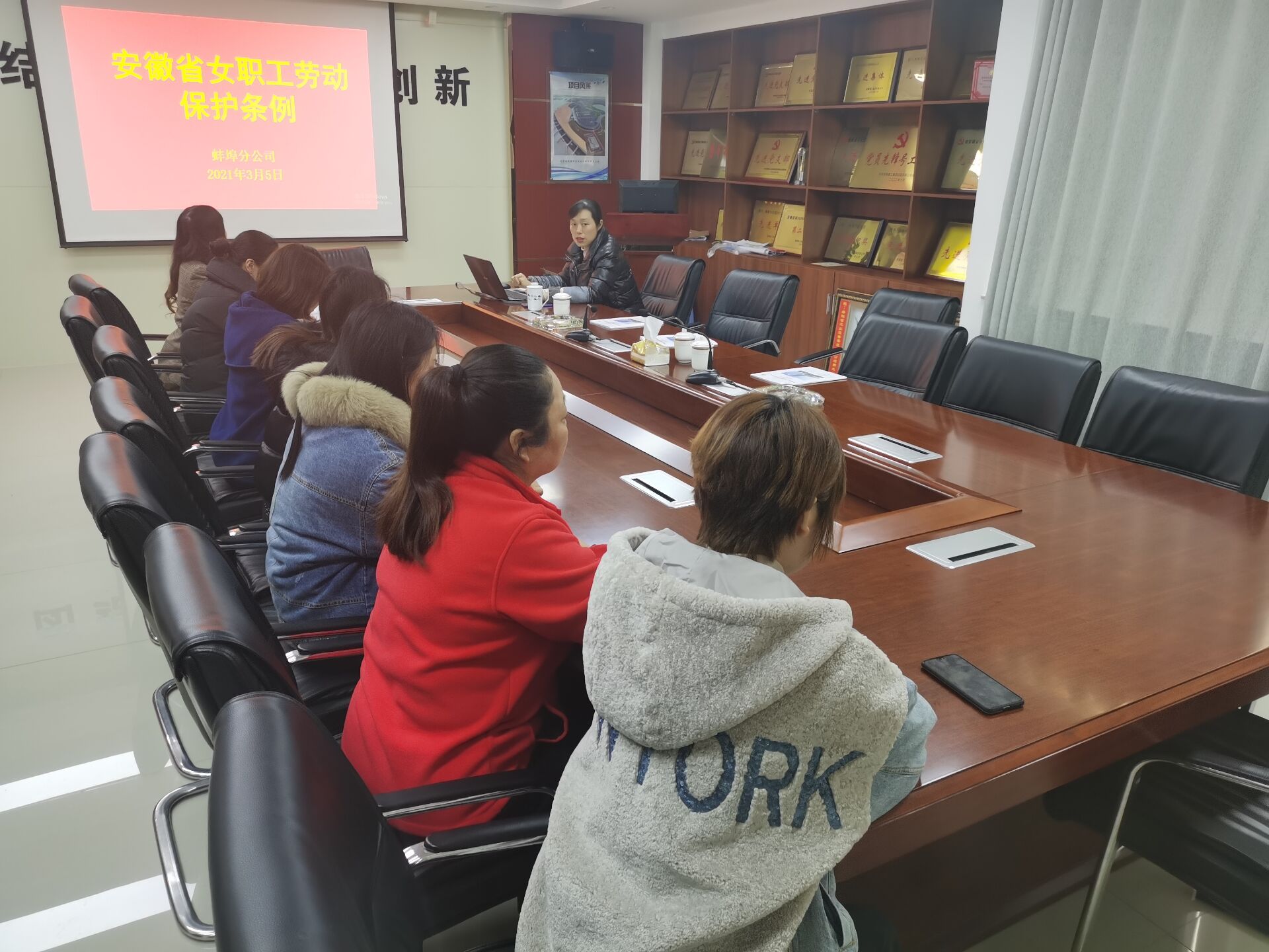 陽(yáng)春三月,百草初醒,萬(wàn)木崢嶸,值此第“111”個(gè)三八國(guó)際勞動(dòng)?jì)D女節(jié)來臨之際,3月5日下午,蚌埠分公司工會(huì)開展了《女職工勞動(dòng)保護(hù)特別規(guī)定》知識(shí)講座活動(dòng)。講座由分公司黨支部書記程茂麗組織,分公司全體女職工聆聽講座。