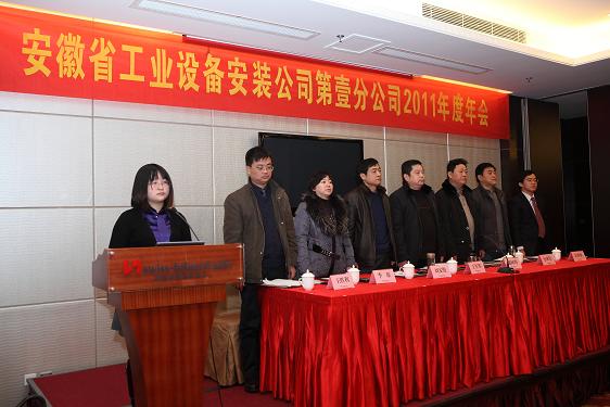 2011年1月18日上午9時(shí),安徽省工業(yè)設(shè)備安裝公司第壹分公司2011年度年會(huì)在浙商瑞雅國(guó)際大酒店2樓會(huì)議廳隆重舉行,總經(jīng)理王軍邦、黨委書(shū)記戴樹(shù)明、副總經(jīng)理劉安俊等一行蒞臨會(huì)議。