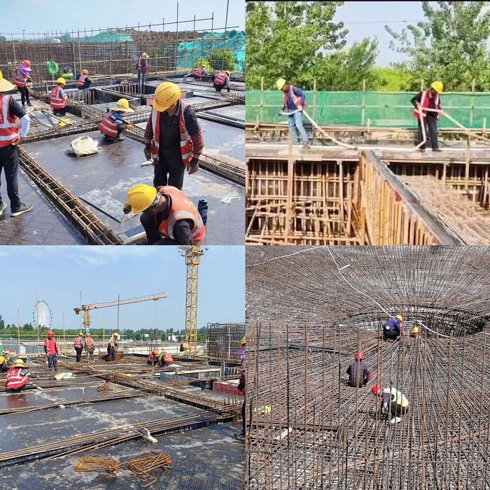 面對工期緊、任務重、壓力大,現(xiàn)場困難重重的實際情況,項目部多次召開專題會議,統(tǒng)一思想,倒排施工計劃,并積極開展勞動競賽。為確保競賽目標實現(xiàn),項目部領導班子實行分工包保制,堅持靠前指揮,嚴控各個施工節(jié)點,同時,項目經理對項目部成員也做了精細化分工調整,劃分區(qū)域、責任到人;對施工班組一條龍服務,一站式解決。針對重難點問題做到急速反饋、急速解決,及時處理現(xiàn)場各類問題,確?!案魉酒湄煛⒏咝Э旖?、風險可控”。在搶抓工程進度的同時,項目部還嚴抓現(xiàn)場安全質量管理。在常態(tài)化做好日常工作同時,相繼開展了安全警示教育、觸電事故安全演練、砌筑、抹灰技能大賽等活動,并積極申報QC成果,其中《提高池壁與筏板連接處混凝土一次性成型率》QC榮獲省級二等獎,多措并舉加快推進了項目建設。
