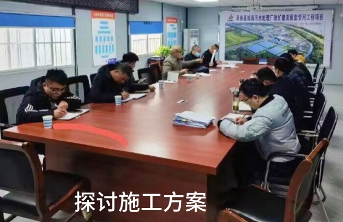 阜南縣城南污水處理廠改擴建及配套管網工程項目總造價8068萬元,合同工期300天。項目自去年10月底開工以來,工期相繼受到疫情、嚴冬暴雪、傳統(tǒng)春節(jié)和3月份春雨連綿等影響,且又因電力公司、燃氣公司對原處于二沉池及中間泵房地下的高壓電纜和燃氣管道的遷移工作遲遲未完成等影響,致使我方不具備施工條件,項目工期被耽誤了3個多月。面對諸多不利因素,項目部迎難而上,主動作為,積極協(xié)調聯(lián)系建設、設計、監(jiān)理等各參建單位,努力創(chuàng)造施工條件,通過對現(xiàn)場周邊施工環(huán)境勘察、研討、科學部署、合理規(guī)劃,終于在原設計理念中開辟出新的可行性施工方案。