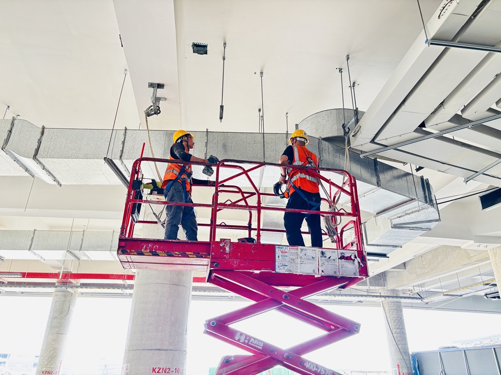 沖刺速度不減,質安防線更堅。項目部將“一次成優(yōu)”理念貫穿始終,嚴控材料進場關,所有管道、線纜均需通過嚴格檢驗方可“上崗”;對關鍵焊接作業(yè)人員開展培訓摸底,力保焊接工藝規(guī)范落實到位;創(chuàng)新應用裝配式支吊架等工藝,同步提升安裝精度與施工效率。安全防線不松懈,每日晨會強化安全交底,項目領導班子高頻次巡查現場,智慧工地系統(tǒng)實時監(jiān)控高風險作業(yè)區(qū)域,確?,F場百余名建設者在大干中始終處于“安全綠洲”,為工程推進筑牢安全屏障。