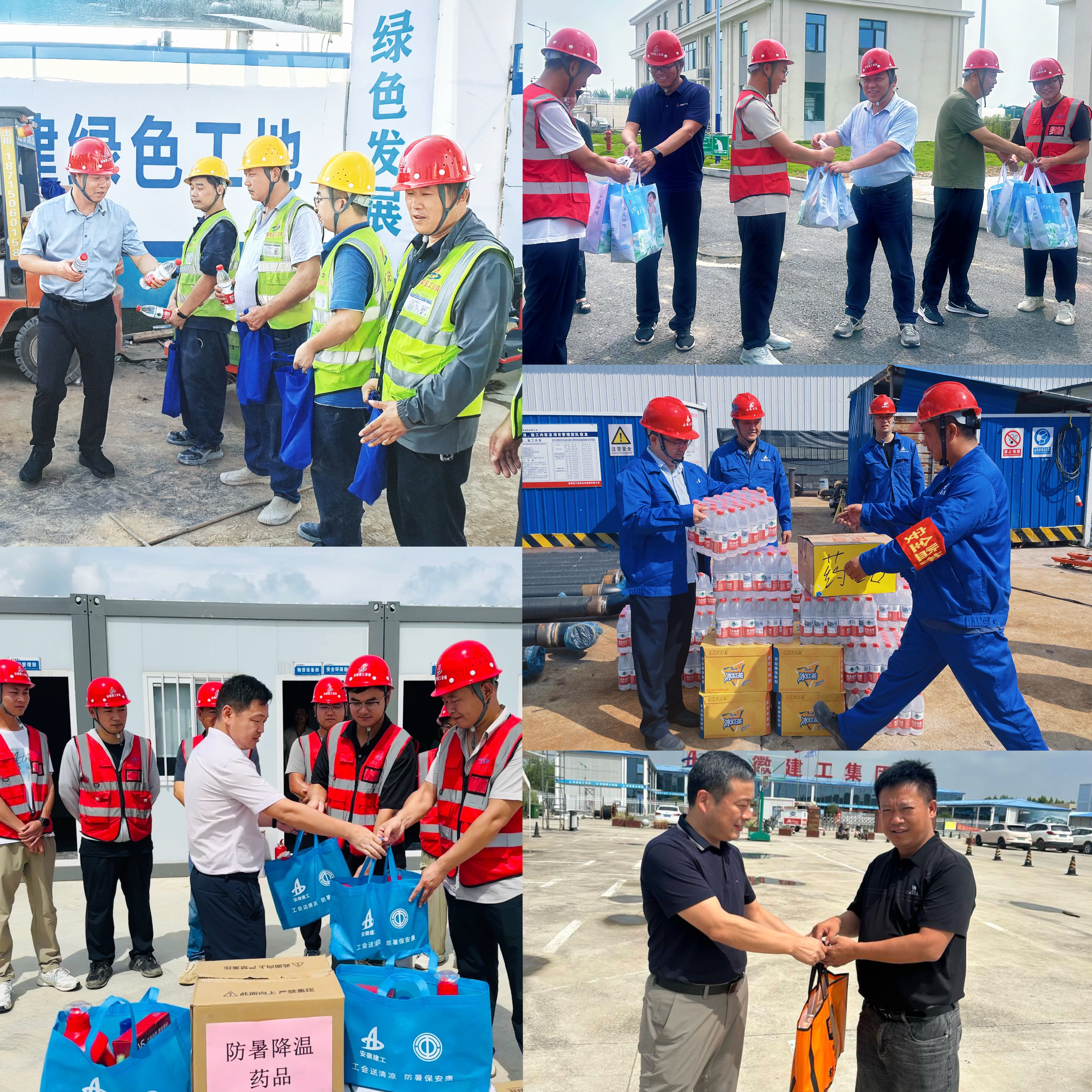 公司領(lǐng)導(dǎo)班子成員分別赴包保督導(dǎo)項(xiàng)目施工現(xiàn)場(chǎng),與一線職工親切交談,對(duì)廣大建設(shè)者們?cè)诟邷丨h(huán)境下堅(jiān)守崗位、辛勤付出表示衷心感謝。隨后為一線建設(shè)者們送上了礦泉水、綠豆、藿香正氣液、人丹等必備防暑降溫物資,叮囑大家在高溫作業(yè)時(shí)注意做好自我防護(hù),確保安全生產(chǎn)與身體健康“兩不誤”。